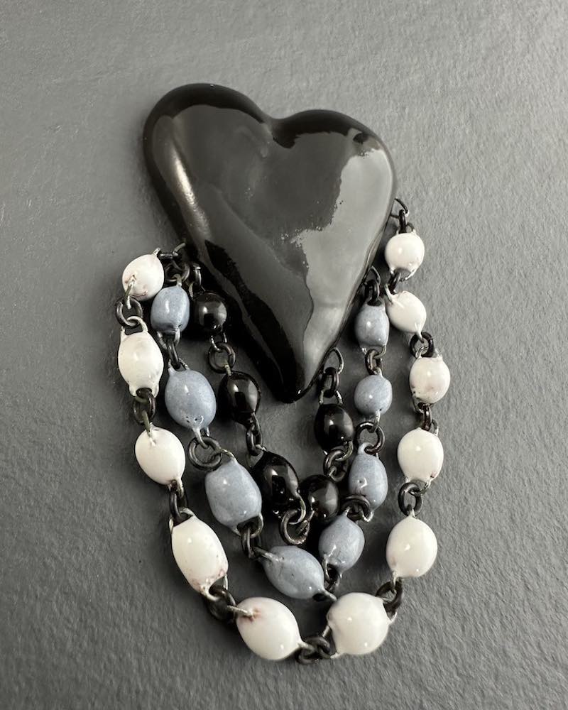 Affirmez votre style avec la broche cœur l’Amour en céramique émaillée, un bijou artisanal au design fort et intemporel.